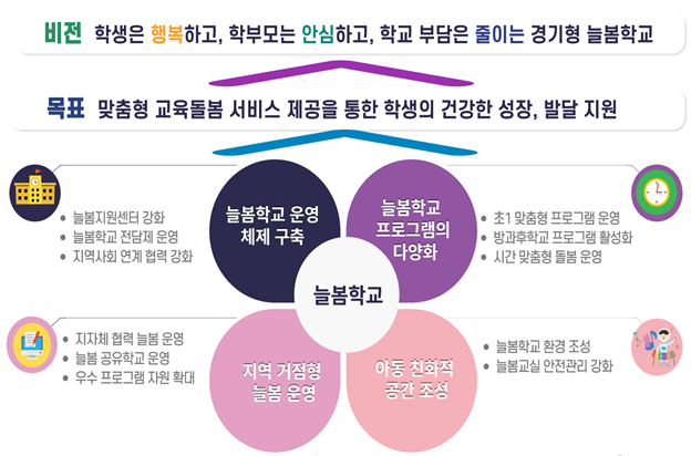 늘봄학교는 정규수업 외에 학교와 지역사회의 다양한 교육자원을 연계하여 학생 성장·발달을 위해 제공하는 종합 교육 프로그램